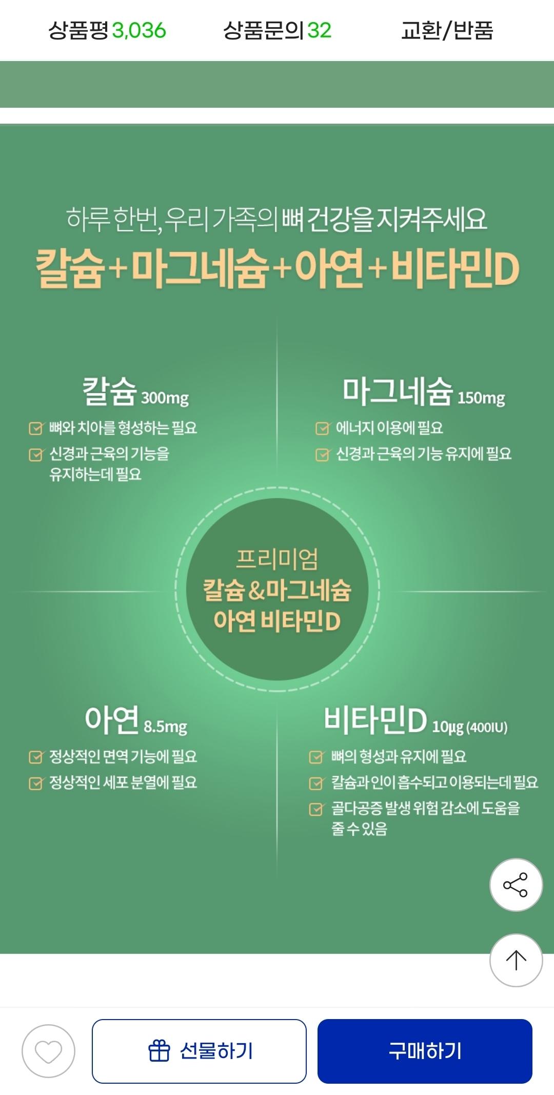 칼슘·마그네슘·아연·비타민D 한 번에 챙길 수 있는 구성이고