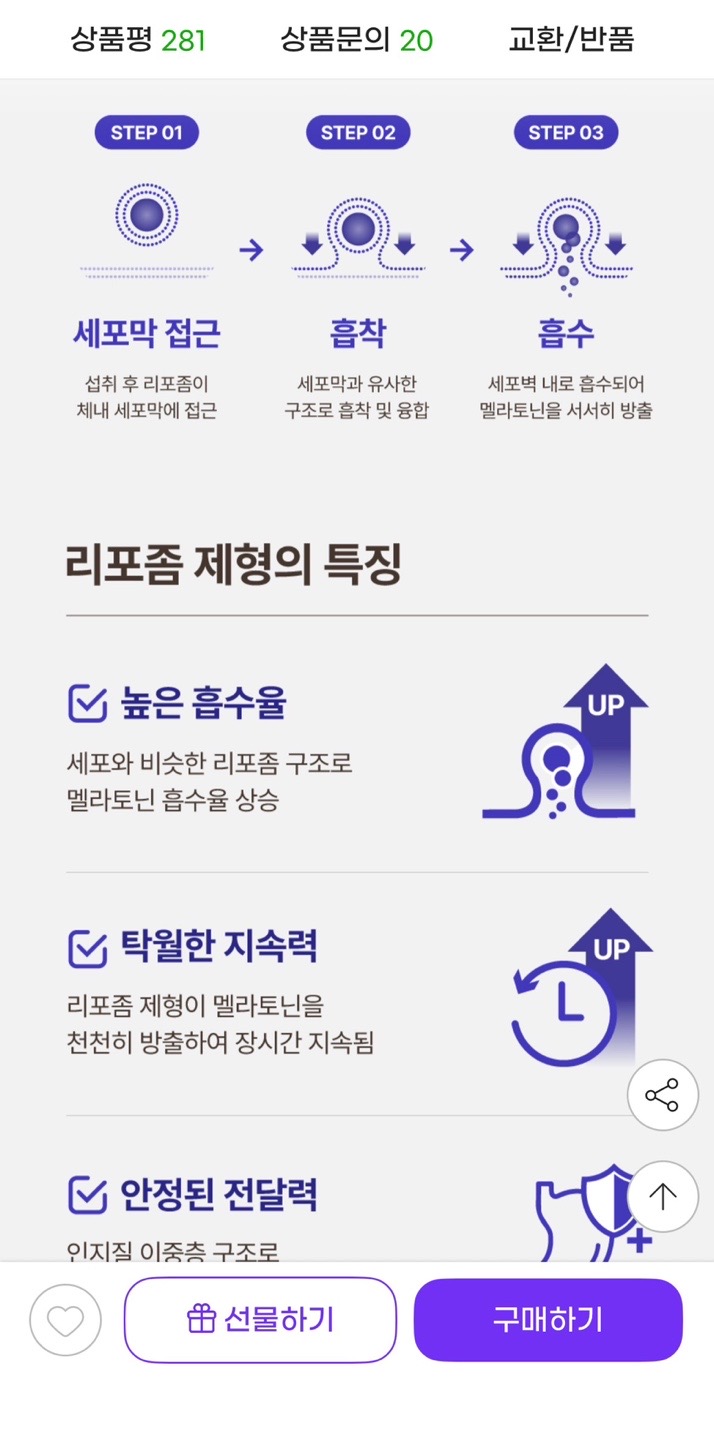 리포좀 식물성 멜라토닌이라 부작용 없고 흡수력 좋아요