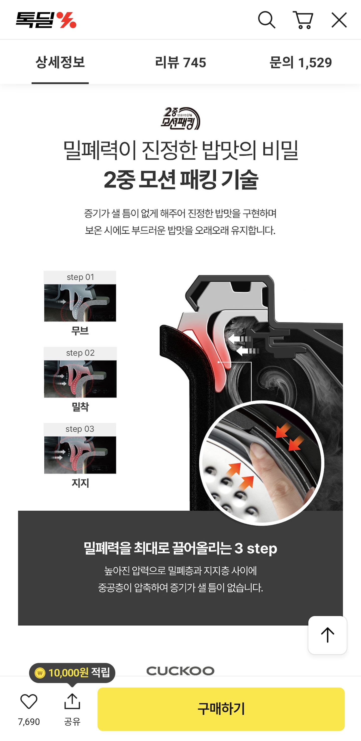 2중 패킹으로 보온 오래해도 밥맛 좋다고 하네요