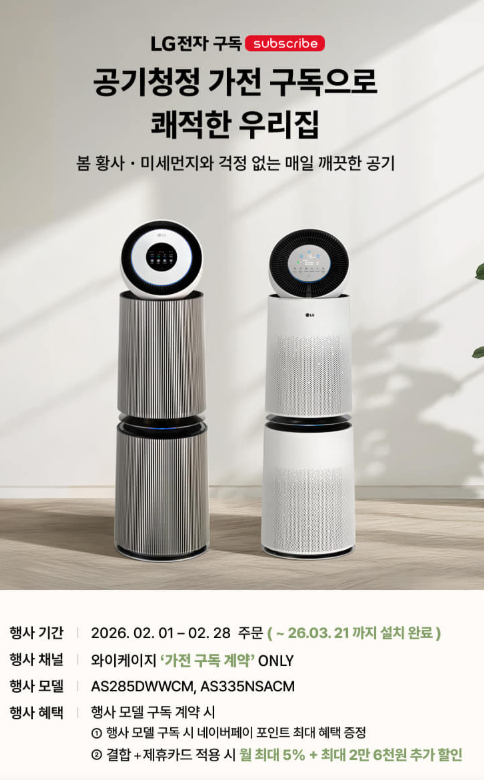 [ykgmall] LG전자 공기청정 가전 구독 (월6,900원~/무료)