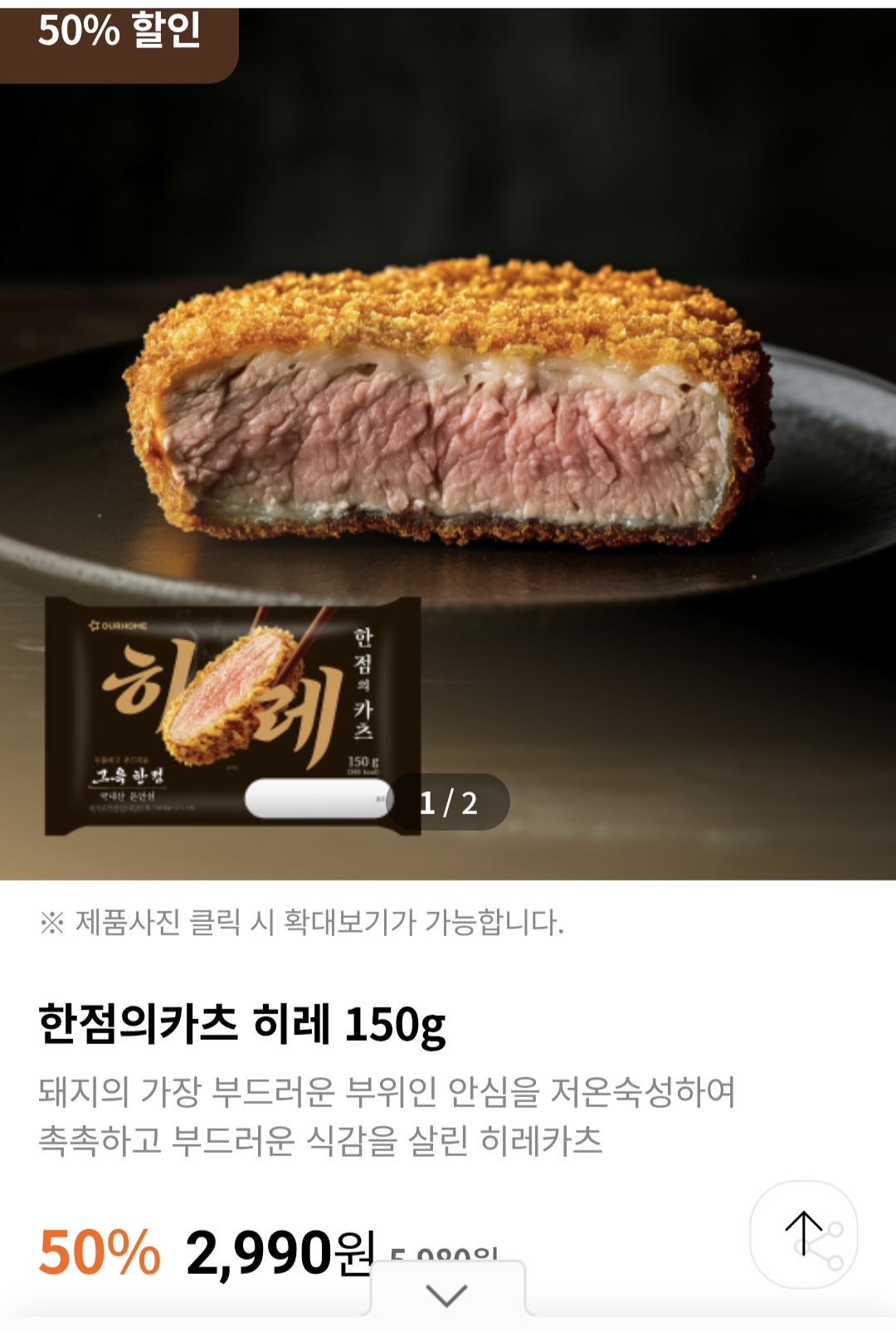 [아워홈몰]한점의카츠 히레 150g 1팩 2,990원 (50%할인/3만이상무배) > 국내핫딜