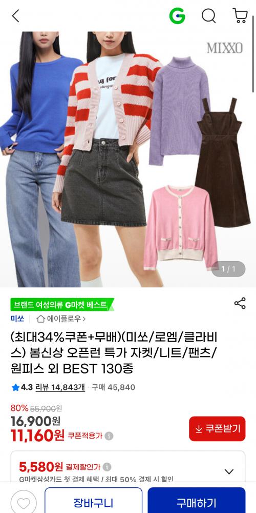 [G마켓] 미쏘 외 여성 스파브랜드 모음전 (9,900원/무료) > 국내핫딜