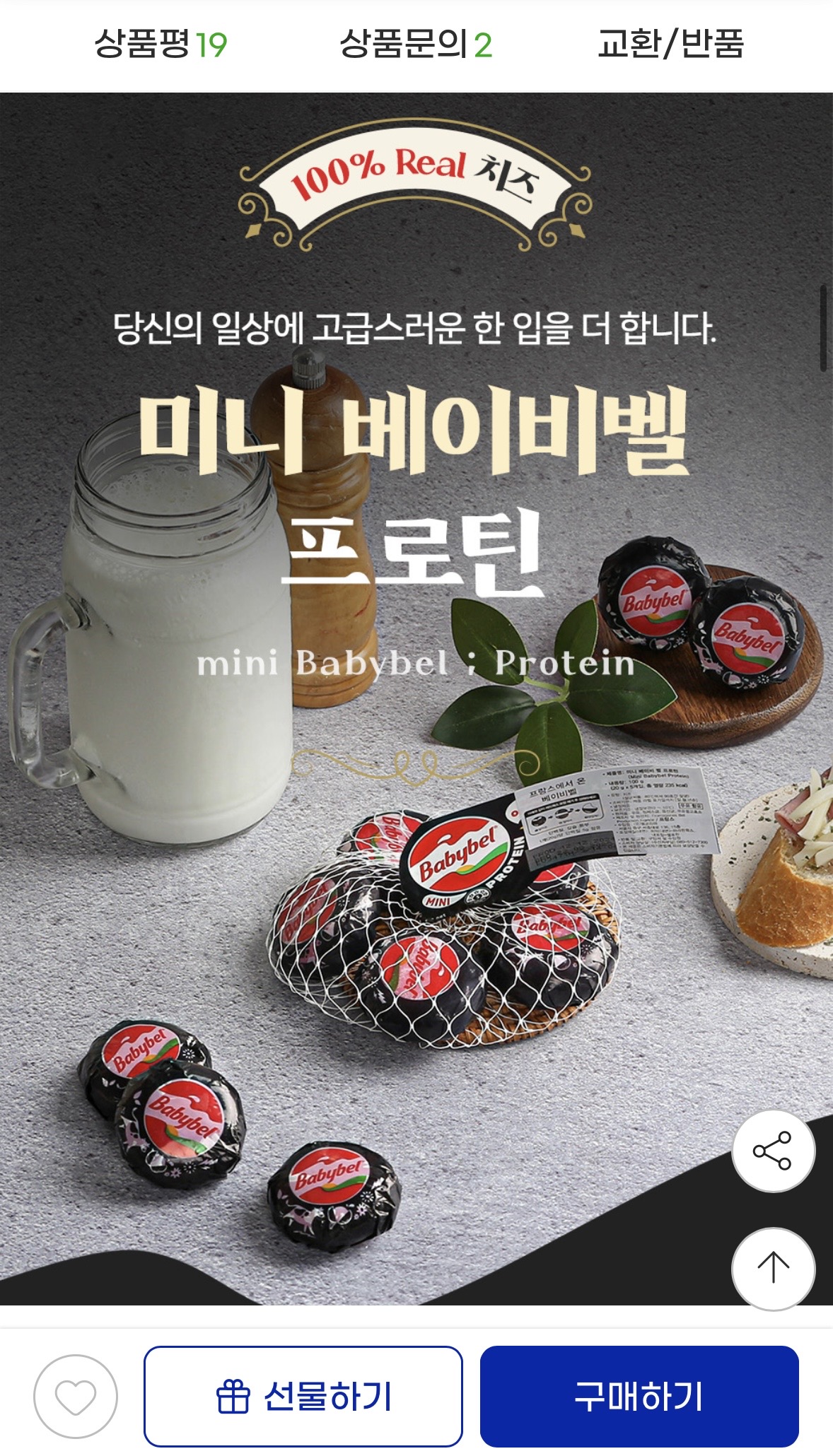100% 리얼 치즈로 만들어 고소하고 영양까지 함께 챙길 수 있습니다.