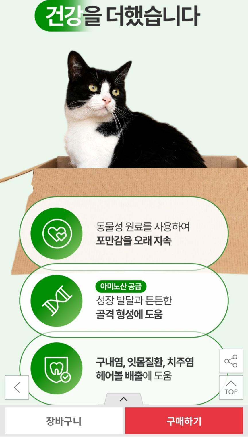 사이즈가 작아서 작은 고양이, 큰 고양이 모두 잘 먹습니다.​