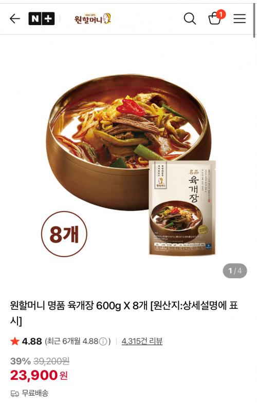 [네이버]원할머니 명품 육개장 600g X 8개(23,900원/무료) > 국내핫딜