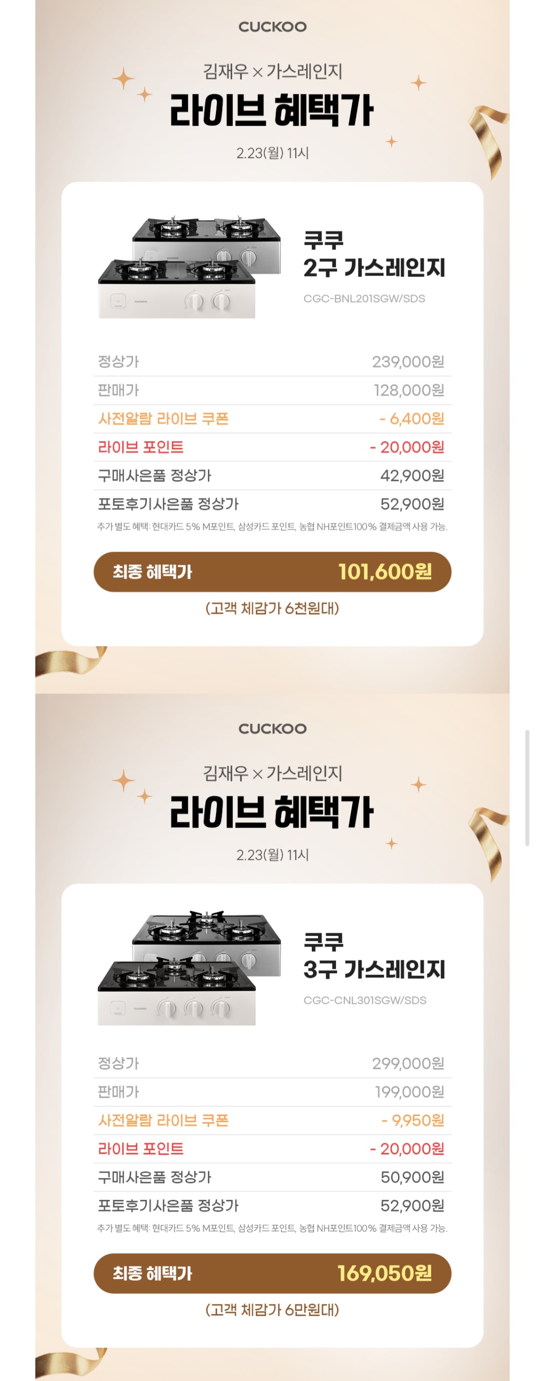 11시부터 쿠쿠 가스레인지 2구, 3구 라이브 해요