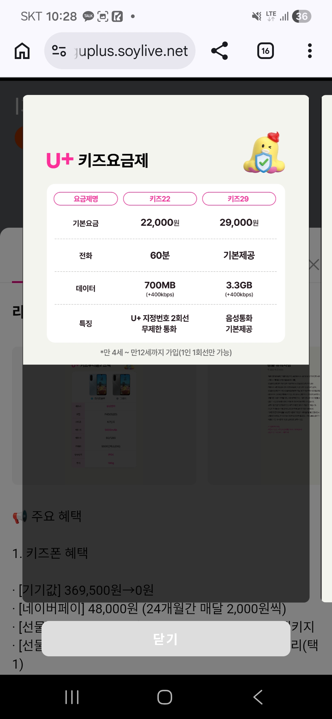 아이 스마트폰 고민중이면 U+ 키즈폰 무너에디션2 조건 확인해보세요.