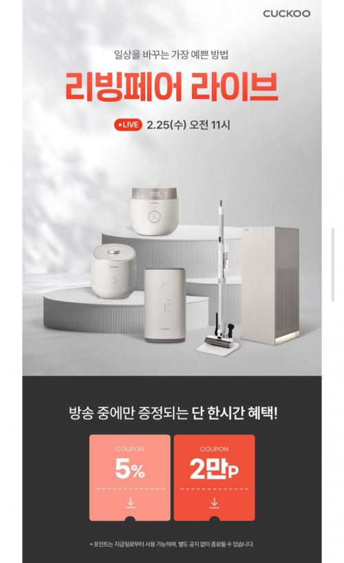 5% 할인 쿠폰이랑 2만 라이브 포인트 다운 가능합니다