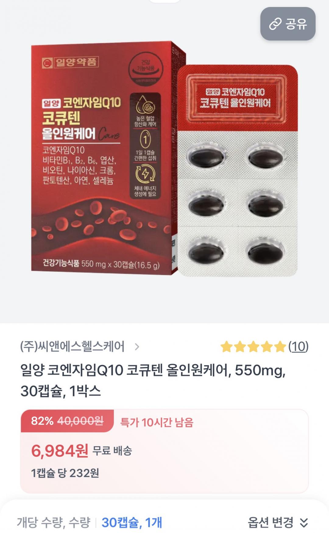 [토스쇼핑]일양약품 일양 코엔자임Q10 코큐텐 올인원케어 30캡슐 (6,984원/무료) > 국내핫딜