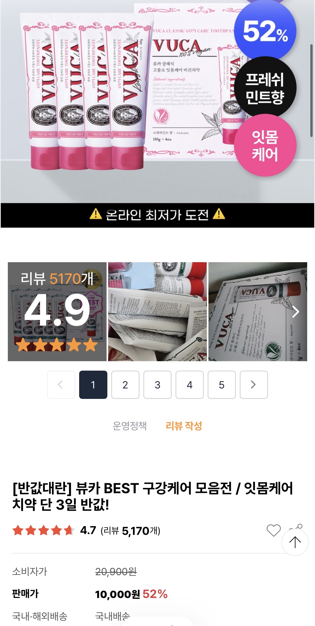 뷰카 잇몸케어 치약 반값대란으로