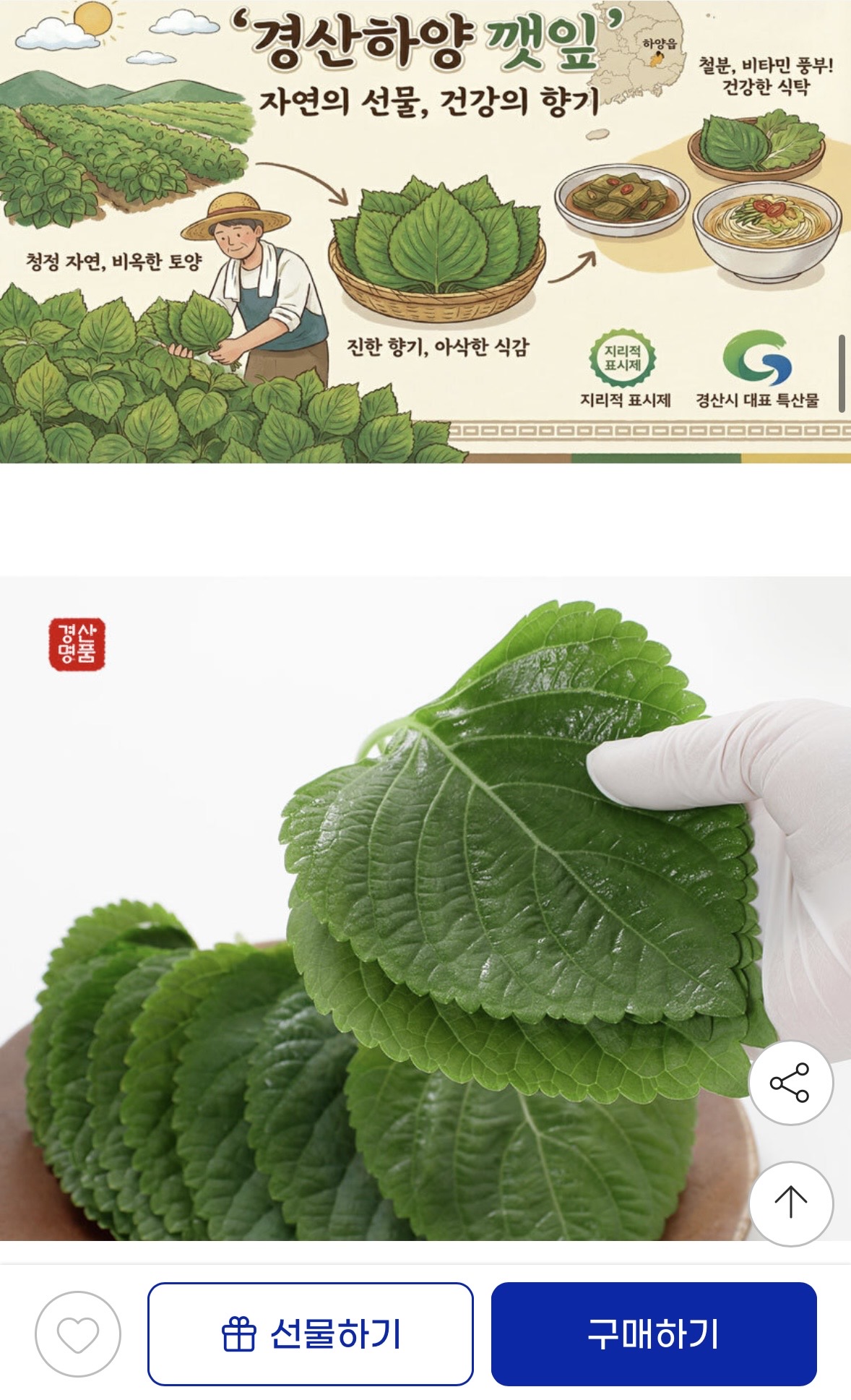[지마켓] 경산 하양 깻잎 당일수확 직송 500g (8,910원/무배) > 국내핫딜