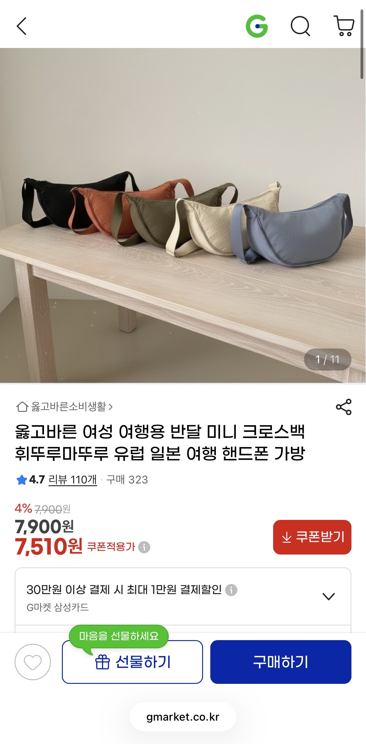 [지마켓]여성용 여행 미니 반달 크로스백 > 국내핫딜