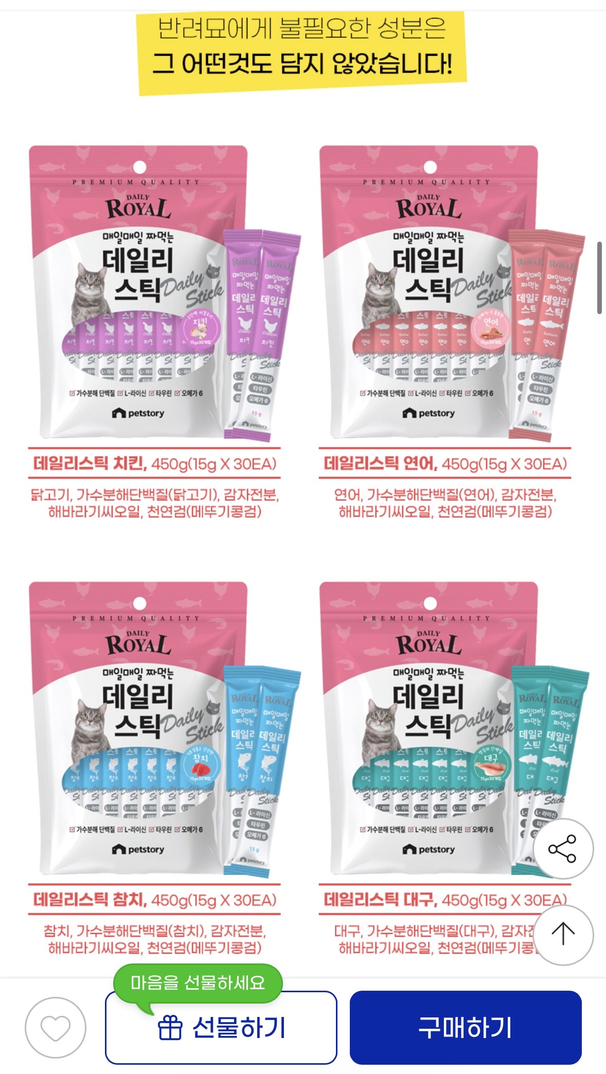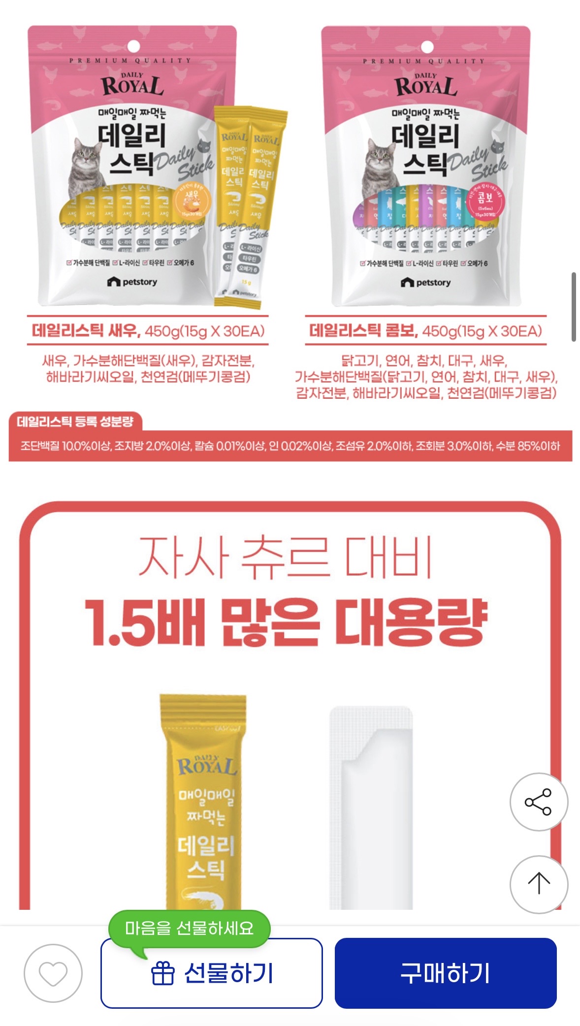 간식으로 하나씩 주기 좋은 스틱 타입이라 급여하기 편했습니다.