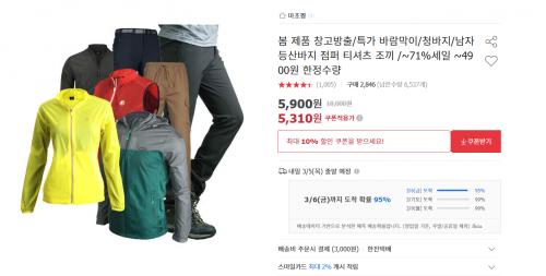 [옥션] 봄 제품 창고방출/특가 바람막이/청바지/남자 등산바지 점퍼 티셔츠 조끼 5,310원/무배 > 국내핫딜