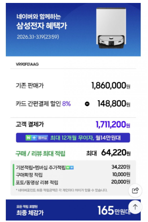 카드가 1,711,200원인데 적립이랑 라이브 혜택, 상품권 다 합치면