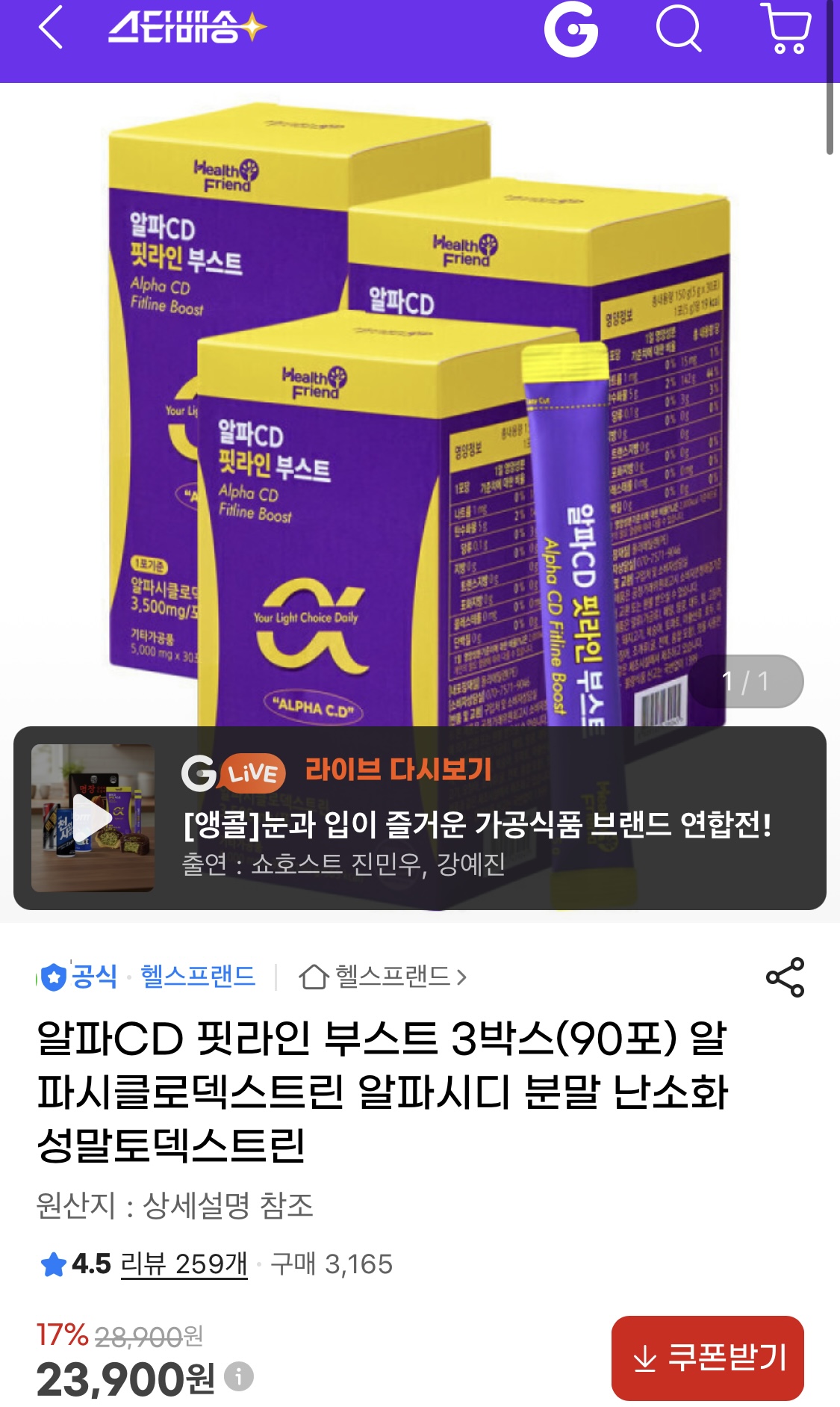 [지마켓]다이어트보조제 알파CD 핏라인 부스트 30포 x 3박스 (23,900원/무료) > 국내핫딜