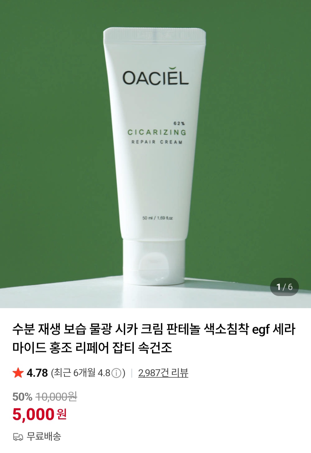 [네이버]수분 재생 시카크림 색소침착 잡티 홍조 리페어 (5000원/무배) > 국내핫딜