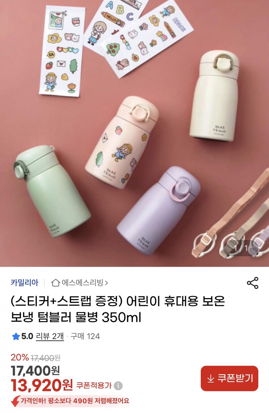 [지마켓] 카밀리아 어린이 휴대용 보온냉 텀블러 350ml (13,920원/무배) > 국내핫딜