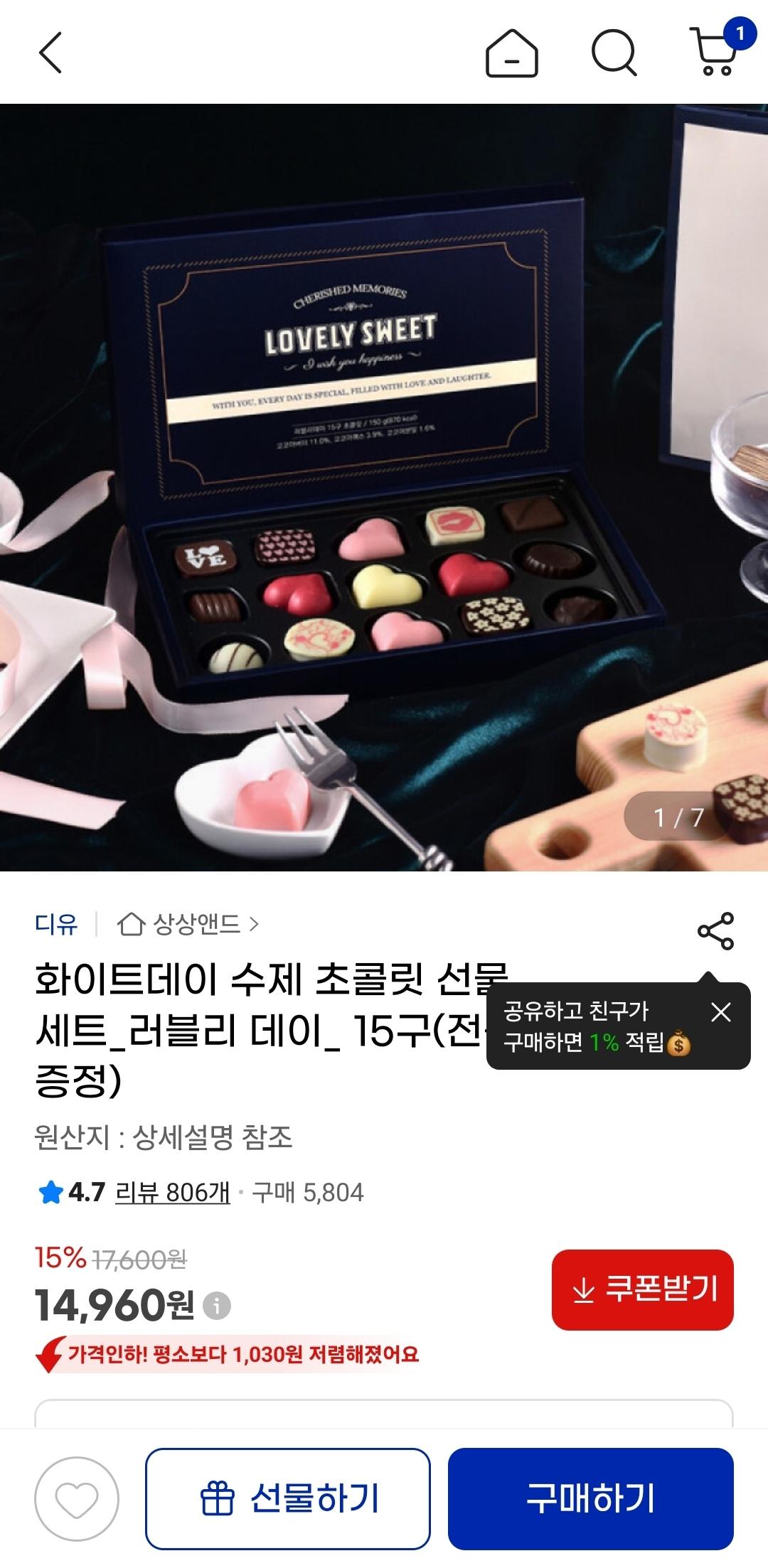[지마켓] 화이트데이 수제 초콜릿 러블리 데이 15구 (14,960원/무료) > 국내핫딜
