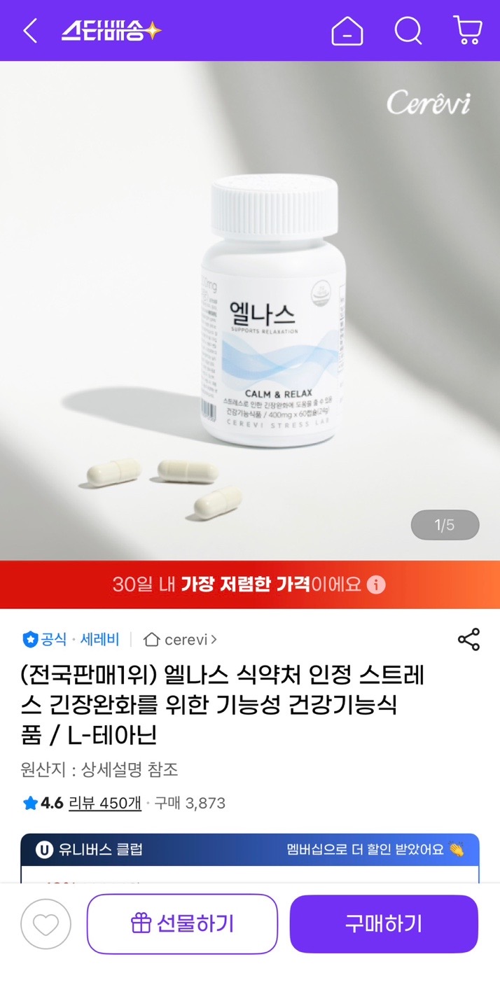 스트레스에 의한 긴장완화 기능성 건강기능식품 전국 판매 1위 제품인데