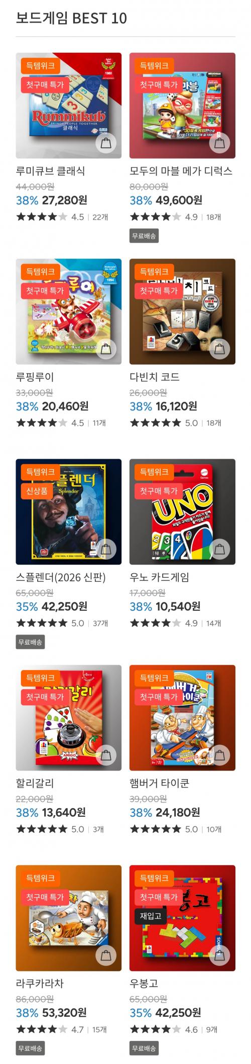 BEST 10 보드게임들 가격 괜찮게 떴네요