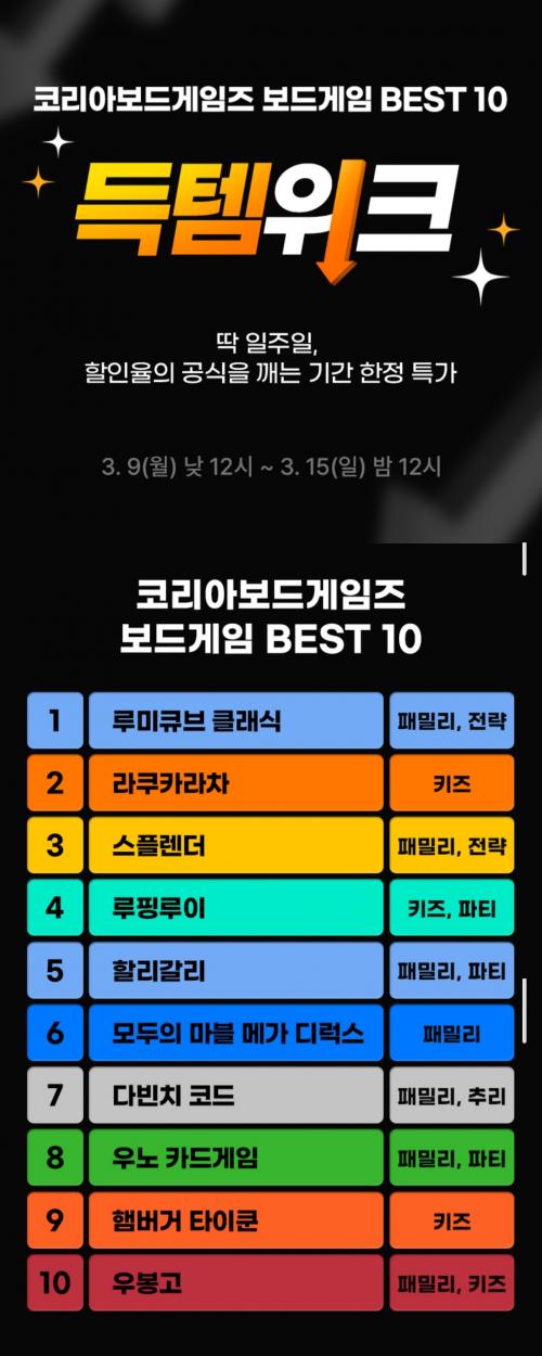 [코리아보드게임즈] 보드게임 BEST 10 득템 위크 할인 38% (다양/무배) > 국내핫딜