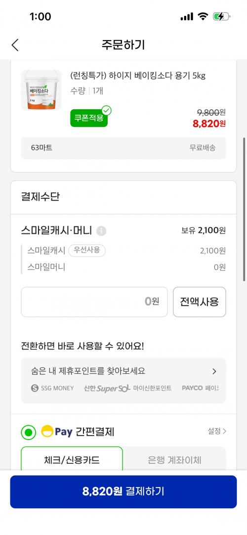 [지마켓] 베이킹소다 버킷형 5kg (8,820원/무료)