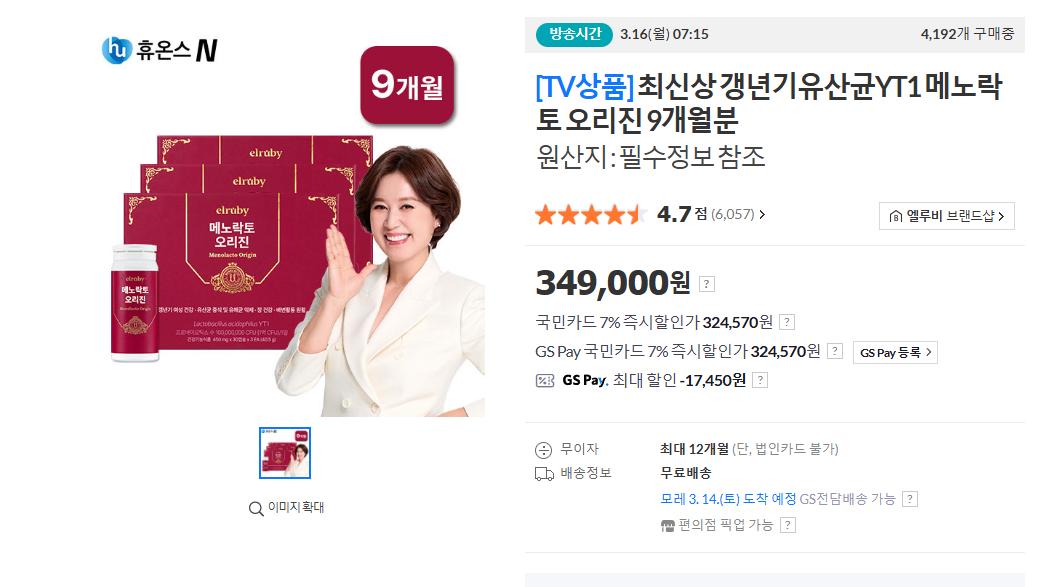 [gs샵] 메노락토 오리진 9개월분 홈쇼핑 방송 혜택 278,000원/무배 > 국내핫딜
