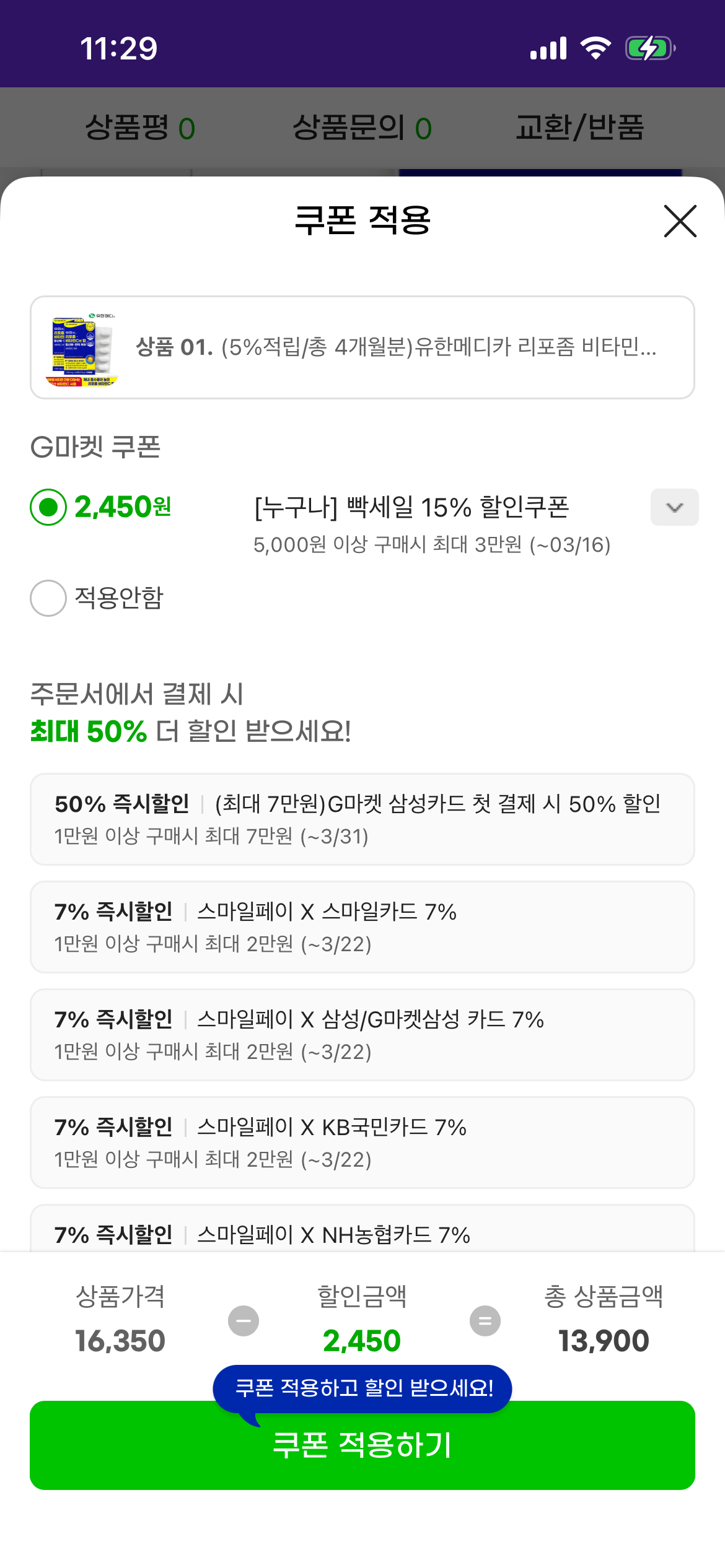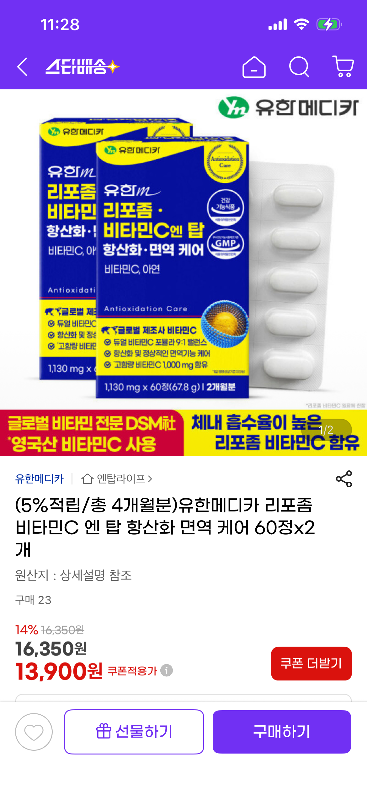 [지마켓] 유한메디카 리포좀 비타민C 엔 탑 항산화 면역 케어 60정x2개 (13,900원/무료) > 국내핫딜