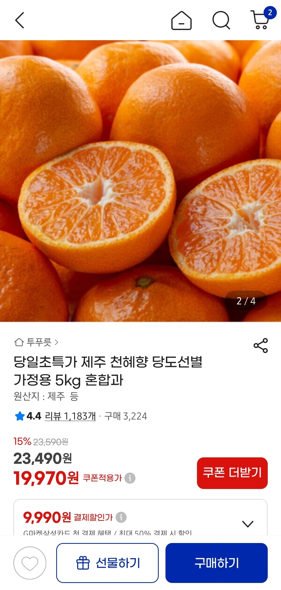 [지마켓] 제주 천혜향 당도선별 가정용 5kg (19970원/무배) > 국내핫딜