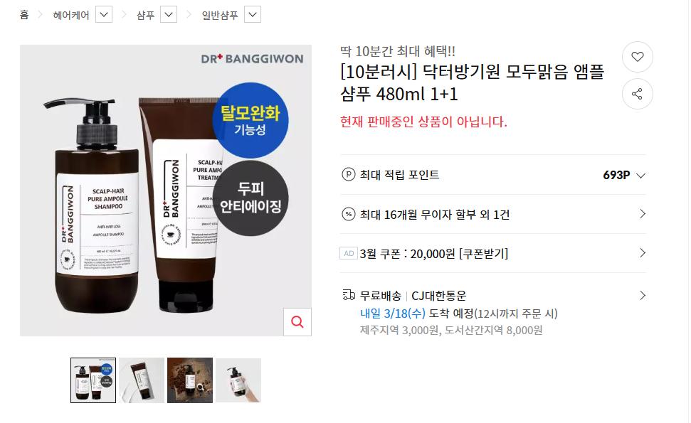 [11번가] [10분러시] 닥터방기원 모두맑음 앰플샴푸 480ml 1+1 (9,900원/무료배송) > 국내핫딜
