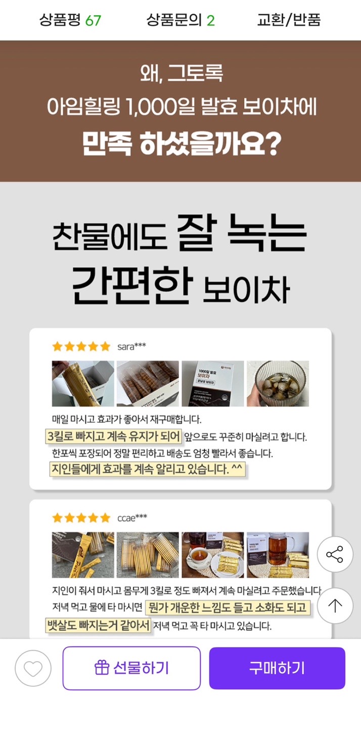 첨가물 없어서 안심하고 마실 수 있습니다