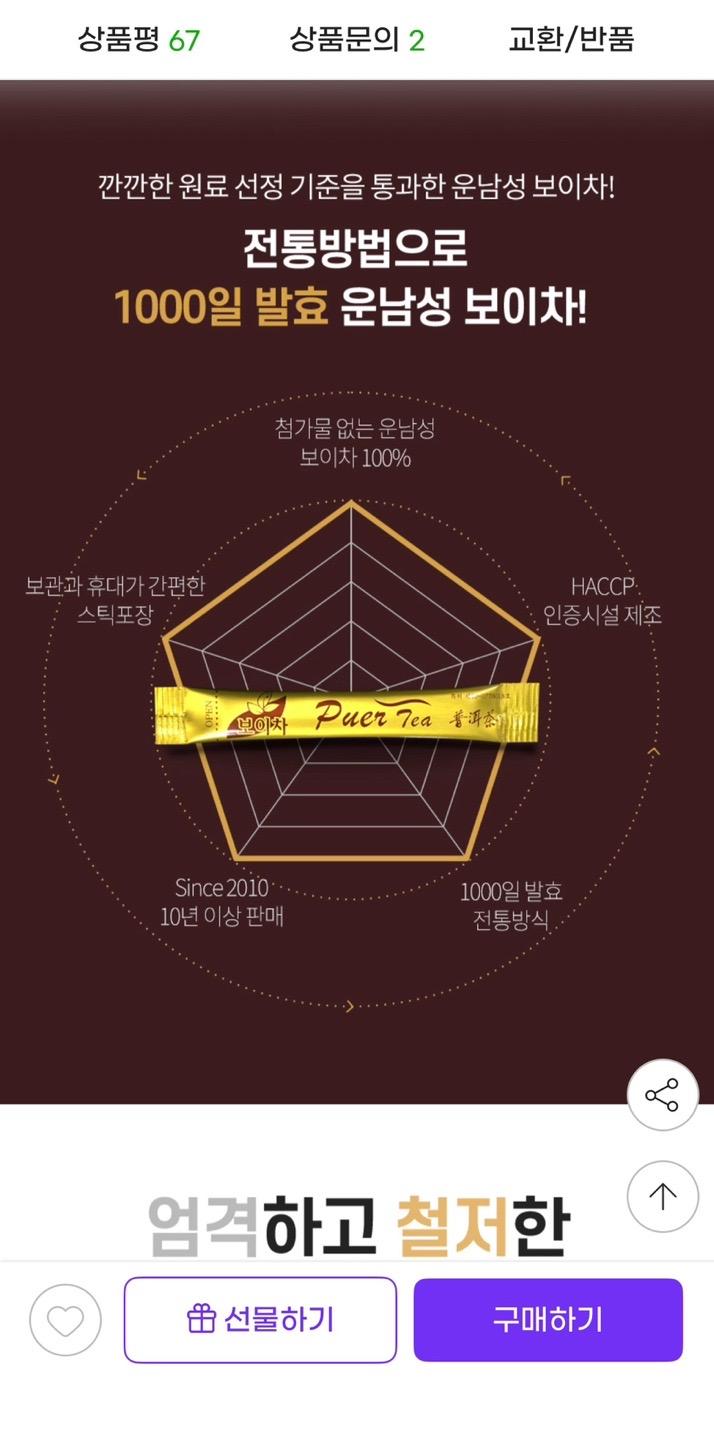 발효 보이차 총 150스틱 오늘 하루만 사은품 포함 2만원입니다