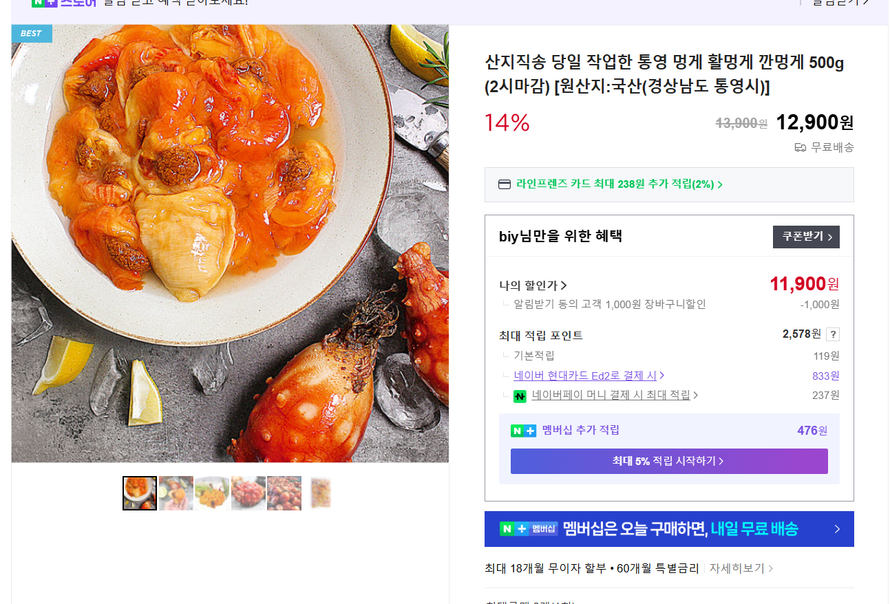 깐멍게 500g이면 손질 번거로움 없이 바로 먹을 수 있어 최저가 구성 필요하신 분 구매하세요