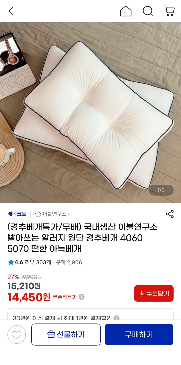 [지마켓] 국내생산 빨아쓰는 알러지원단 경추베개 (14,450원/무배) > 국내핫딜