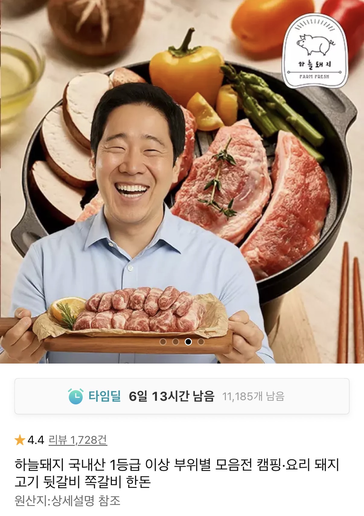 [11번가] 하늘돼지 국내산 1등급 부위별 모음전 (17,900원~/무배) > 국내핫딜