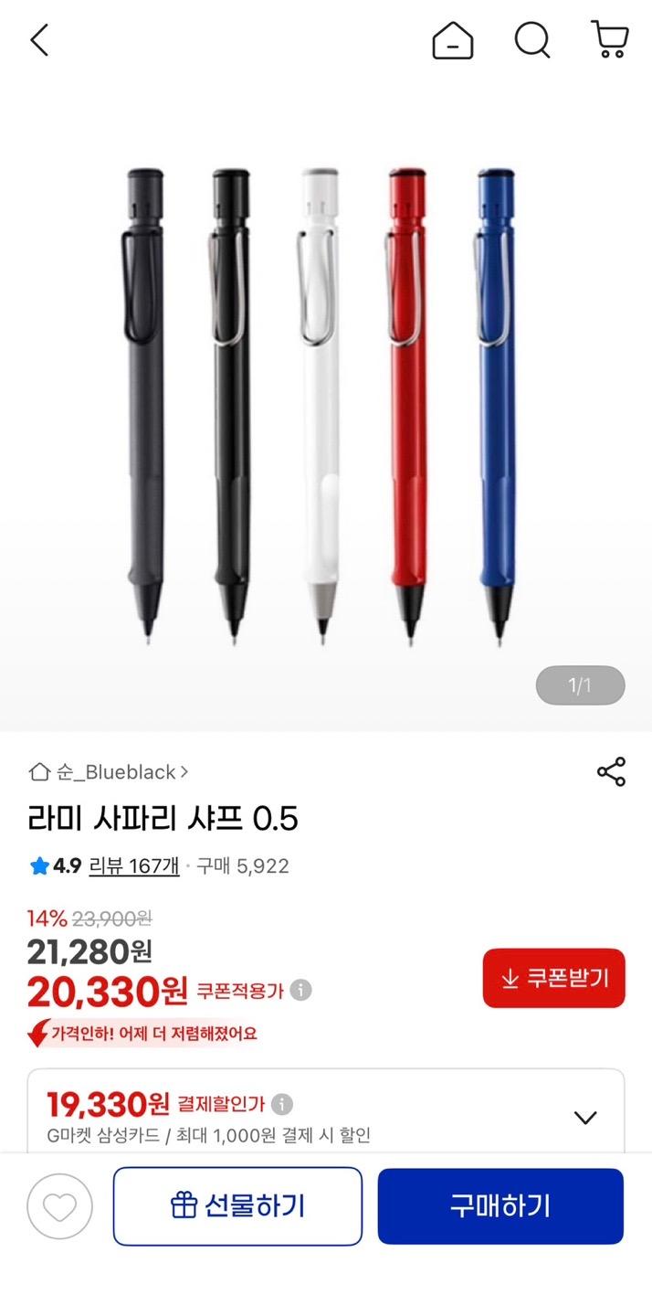 [지마켓] 라미 사파리 샤프 0.5 (20,330원/3,000원) > 국내핫딜