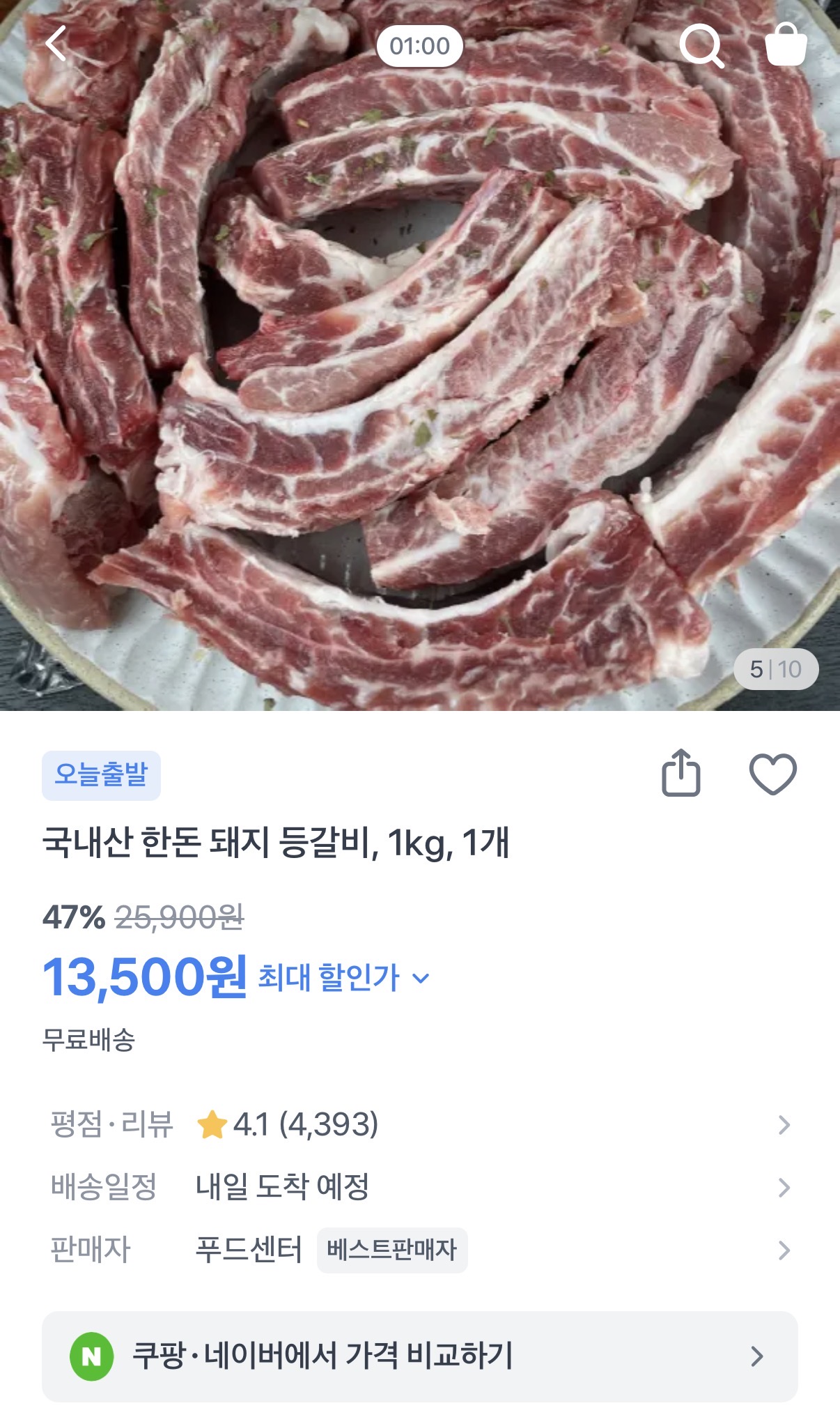[토스] 국내산 한돈 돼지 등갈비 1kg (10-15대) (13,500원/무배) > 국내핫딜