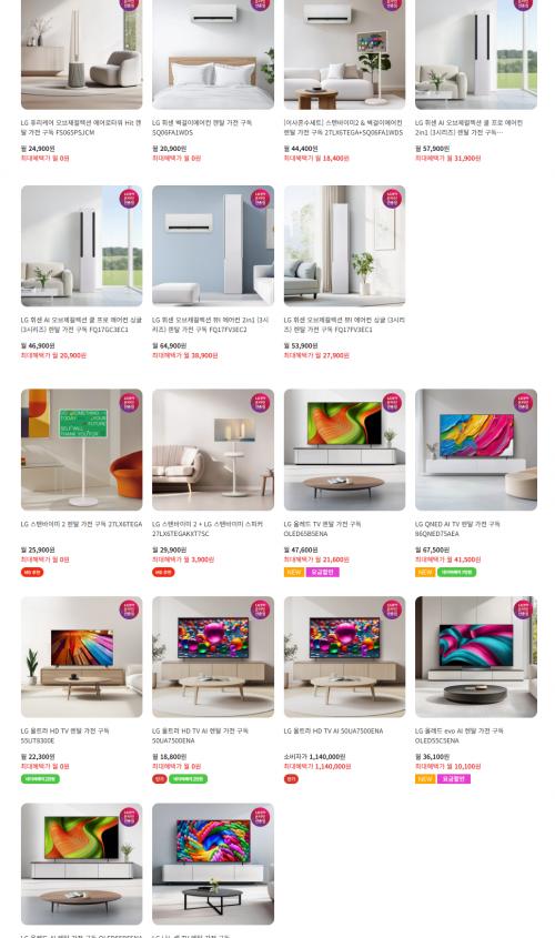 [ykgmall] LG전자 월 구독딜 0원 가전 모음 (0원~/무료)