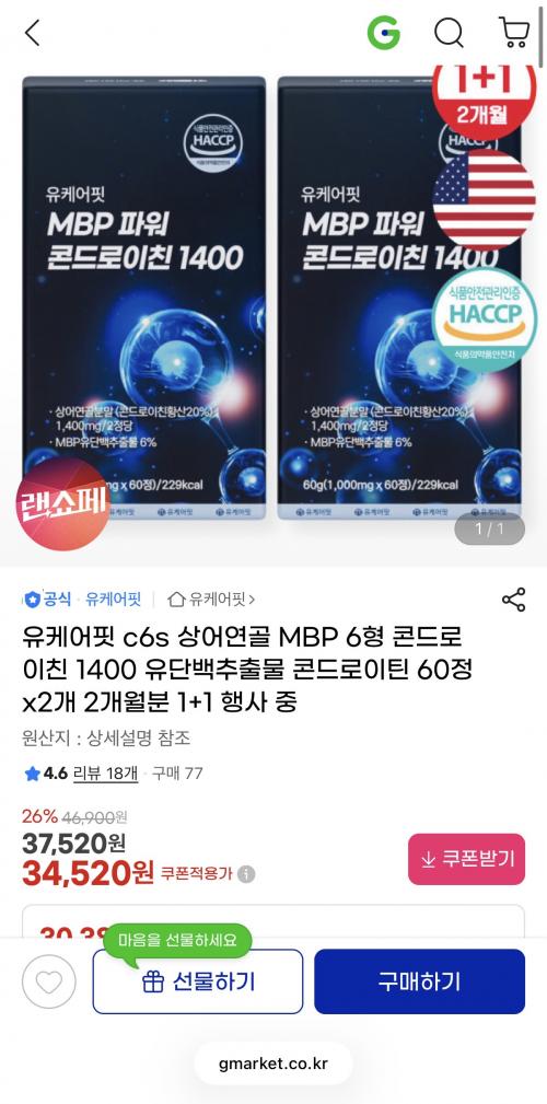 C6S 6형 콘드로이친 함량이 1,400mg으로 고함량인데 이 가격이면 가성비가 상당히 좋습니다.