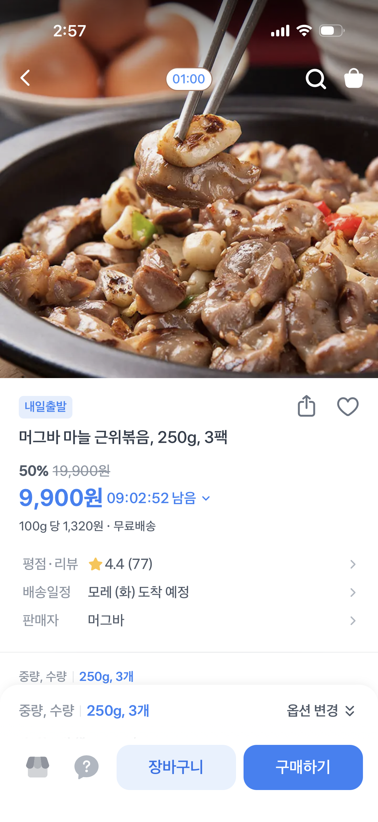 [토스] 머그바 마늘 근위볶음, 250g, 3팩 (9900원/무배) > 국내핫딜