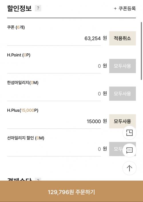 카톡플러스 친구등록까지 하면 5천원 할인도 되네요. 전 모두 적용하니 129,796원나왔습니다.