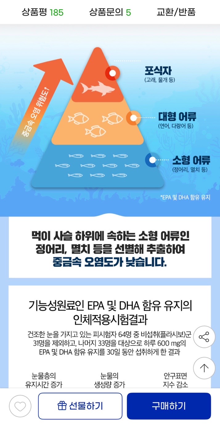 정어리, 멸치에서 추출한 오메가3라 중금속 오염도 낮구요