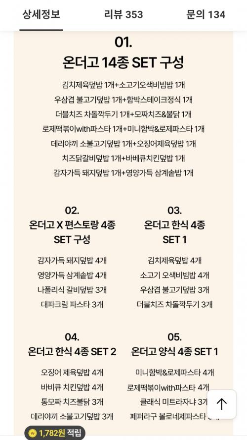 [톡딜]아워홈 온더고 간편 도시락 한식/일식/양식/덮밥류 14팩 세트 (55,250원/무료) > 국내핫딜