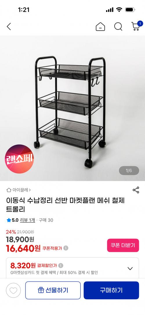 [지마켓] 이동식 수납정리 선반 마켓플랜 메쉬 철제 트롤리 (16,640원/무배) > 국내핫딜