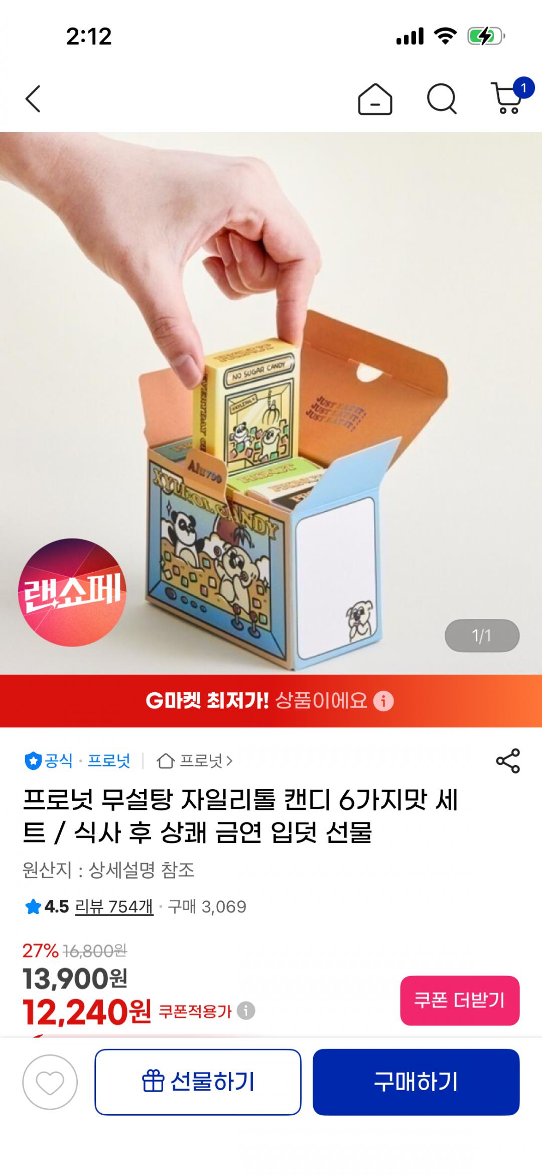 [지마켓] 프로넛 무설탕 자일리톨 캔디 6가지맛 세트 (12,240원/무료)