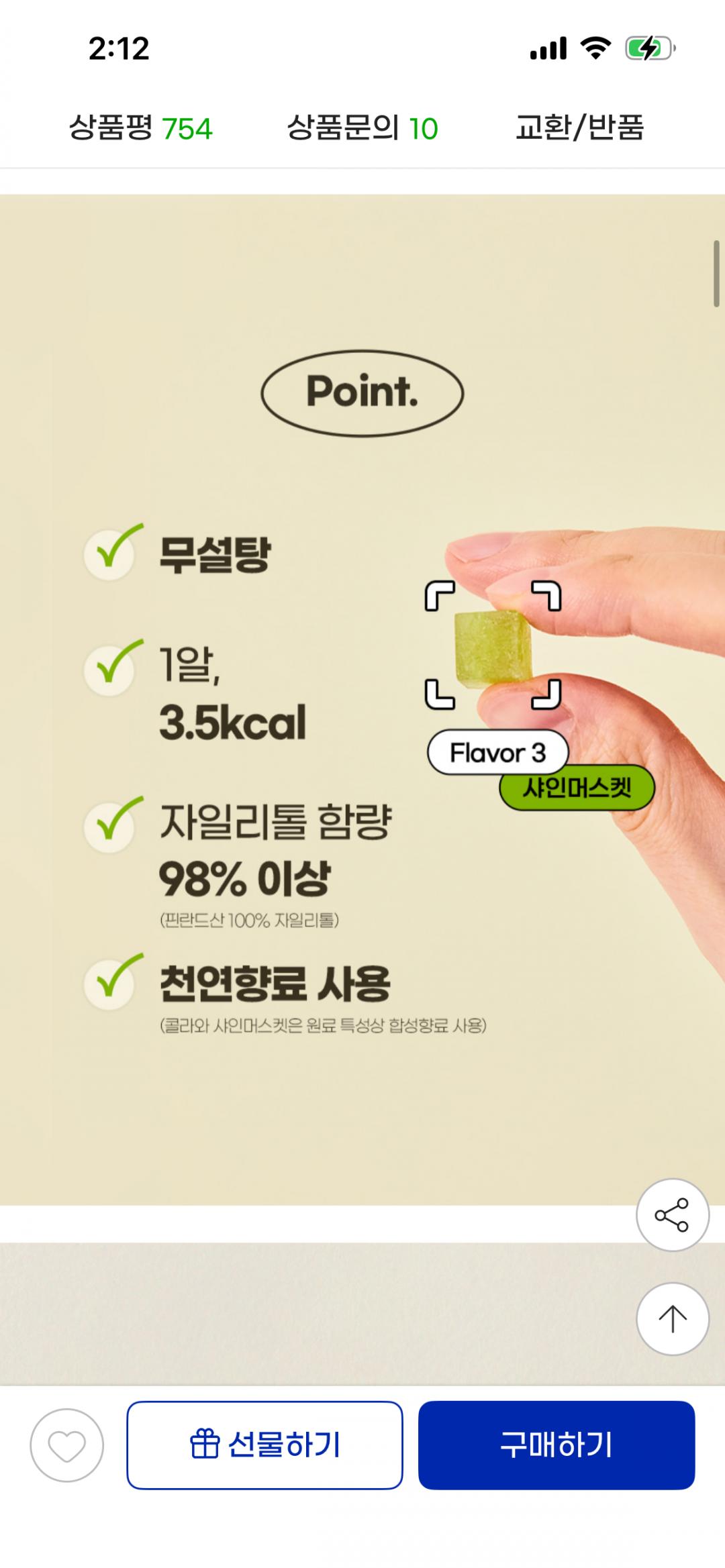 자이리톨 함량 98% 이상이라 바로 구취제거 돼요