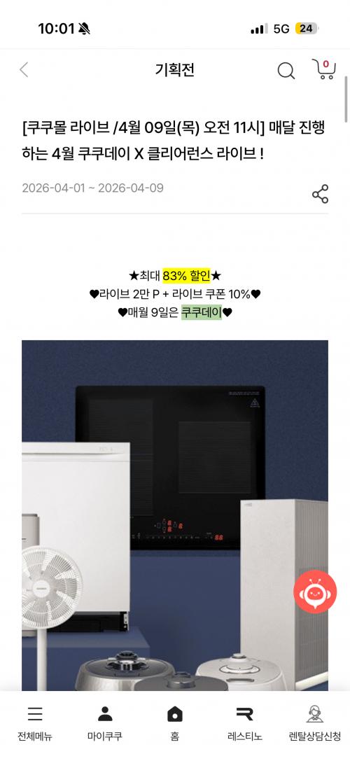[쿠쿠] 쿠쿠데이 라이브 (10%쿠폰+2만P/무료)