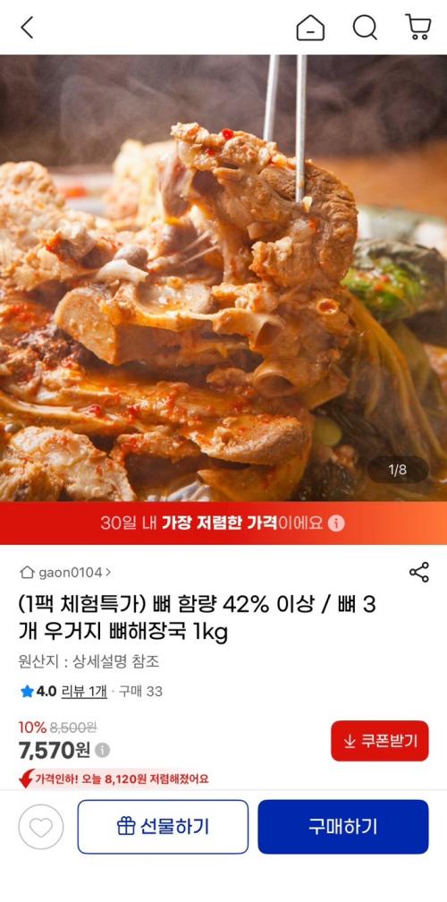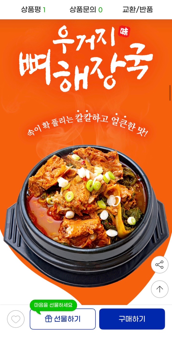 [지마켓] 뼈함량 42%이상 우거지 뼈해장국 1kg (7,570원/무배) > 국내핫딜