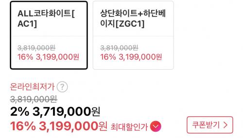 할인+카드7%+특별할인 받으면 319만원대이고